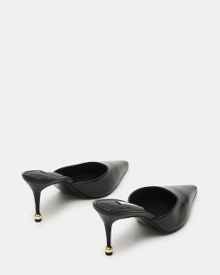 The ADELINE BLACK LEATHER is a sleek featuring a pointed toe silhouette and refined gold-tone detail for an elevated everyday look. The design offers effortless styling versatility. transitioning seamlessly from office to evening wear. A sophisticated essential that combines comfort with contemporary elegance.