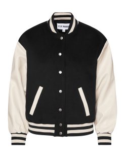 ALEXANDRA is an old-school varsity with striped trim and contrast sleeves. updated with a drop shoulder for comfortable layering and a slouchy. relaxed fit.