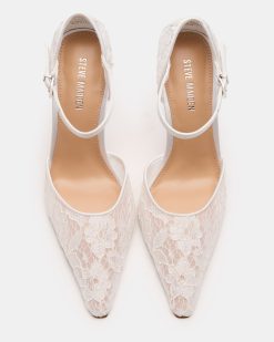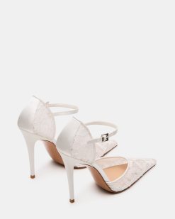 Elevate your footwear collection with the AVANT WHITE LACE . a sophisticated pointed-toe pump. featuring a delicate ankle strap for secure. all-day comfort. The sleek stiletto heel delivers timeless elegance and a flattering silhouette for any occasion. A versatile essential that transitions seamlessly from office to evening wear.