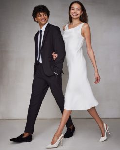A grosgrain ribbon wraps around the slingback strap of the BRI point toe stiletto and finishes with a bow accenting the side of the shoe.