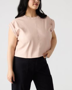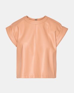 This CAT is a versatile addition to your wardrobe. Made with faux leather. it features short-sleeves and a back-zipper closure for a stylish and comfortable fit. Perfect for any occasion. this top will elevate your outfit with its sleek and modern design.