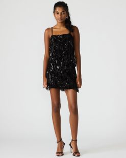 Elevate your evening style with the CINDI SEQUIN BLACK. This skirt features shimmering sequin embellishments arranged with dynamic fringe detailing. adding movement and a bold statement to your look. Designed as part of a matching set. it offers a coordinated fashion-forward ensemble perfect for special occasions or nights out. The skirt’s luxurious finish and fluid fringe create eye-catching flair while maintaining effortless wearability.