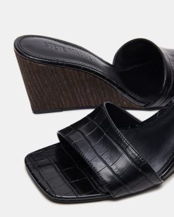 This square-toe by CURCIO features a chic crocodile design. adding a touch of elegance to any outfit. The wedge provides height and stability. while the square toe offers comfort and a modern feel. Elevate your style with this sophisticated and versatile sandal.