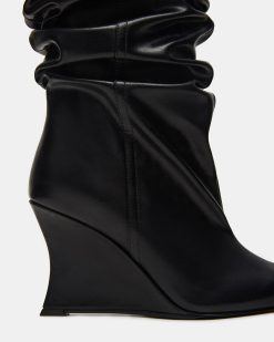 The DISTORTION features a scrunched design. wedge heel. and a pointed-toe. extending to knee height for a bold. fashion-forward silhouette. Crafted to combine edgy style with comfortable wear. this boot elevates any outfit with its sleek design and distinctive wedge support. Ideal for those seeking a statement piece that balances trend and practicality.