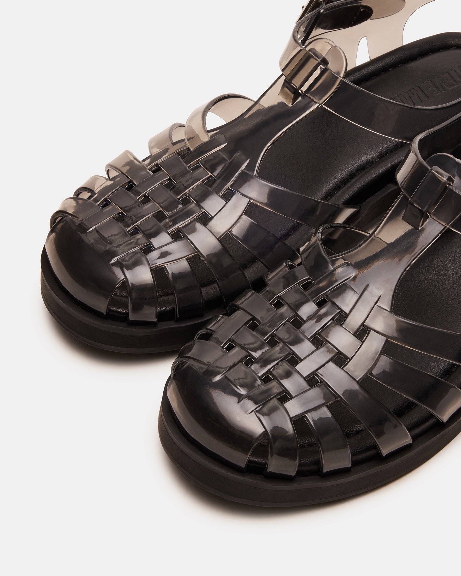 Experience comfort and style with FLICKER – the fisherman jelly with a rounded toe and flatform design. Enjoy a secure fit and added height while still being able to walk with ease. Perfect for any casual or outdoor occasion.
