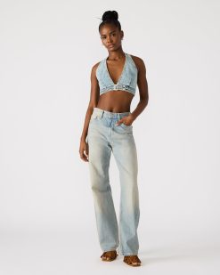 The GRAZIELLA denim is a stylish and versatile piece. perfect for any summer wardrobe. The halter design and v-neckline add a touch of elegance. while the buckle detail adds a unique element. Made from high-quality denim. it offers both comfort and style.