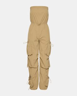Stay stylish and organized with the KYLO . This strapless cargo jumpsuit features functional pockets. making it easy to keep your essentials close while on the go. This versatile piece is also fashionable and practical.