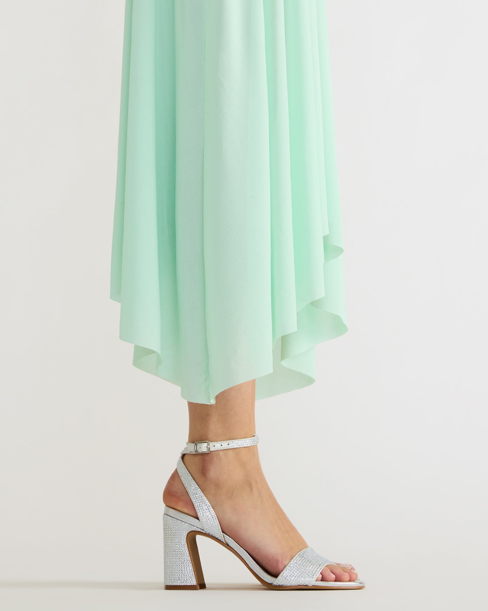 The LARAH RHINESTONES features a rounded toe and a sturdy block . offering both style and stability for all-day wear. Its secure ankle strap ensures a comfortable. locked-in fit that enhances confidence with every step. This design balances elegance and practicality. making it a versatile choice for various occasions.