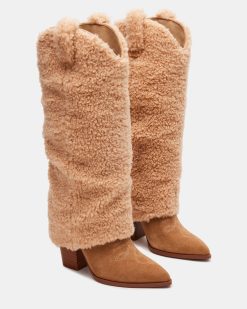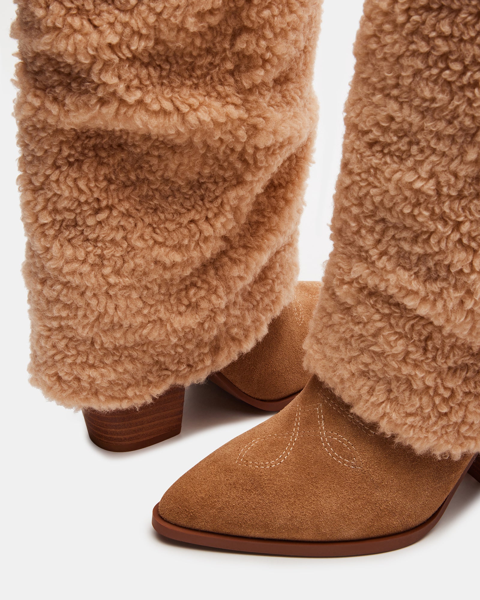 Decorative stitching and faux fur accents give the LASSY knee a edge with a point toe and an angled heel to complete the theme. The foldover construction adds a slouchy style to these knee high boots.