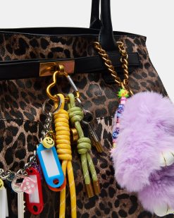 Introducing the LEILANI bag- a must-have handbag for any fashion-forward individual. This large tote features a detachable bunny bag charm and a playful multi-colored logo. The detachable swag chain adds a touch of versatility. while the adorable smiley face charm brings a pop of personality. Elevate your style with this statement piece.
