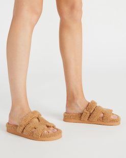 This faux shearling edition of the MAYVEN flatform features the same geometric front strap cutouts. adjustable top strap. and molded footbed. with faux shearling inside and out for a soft. fuzzy update to an already-comfy design.
