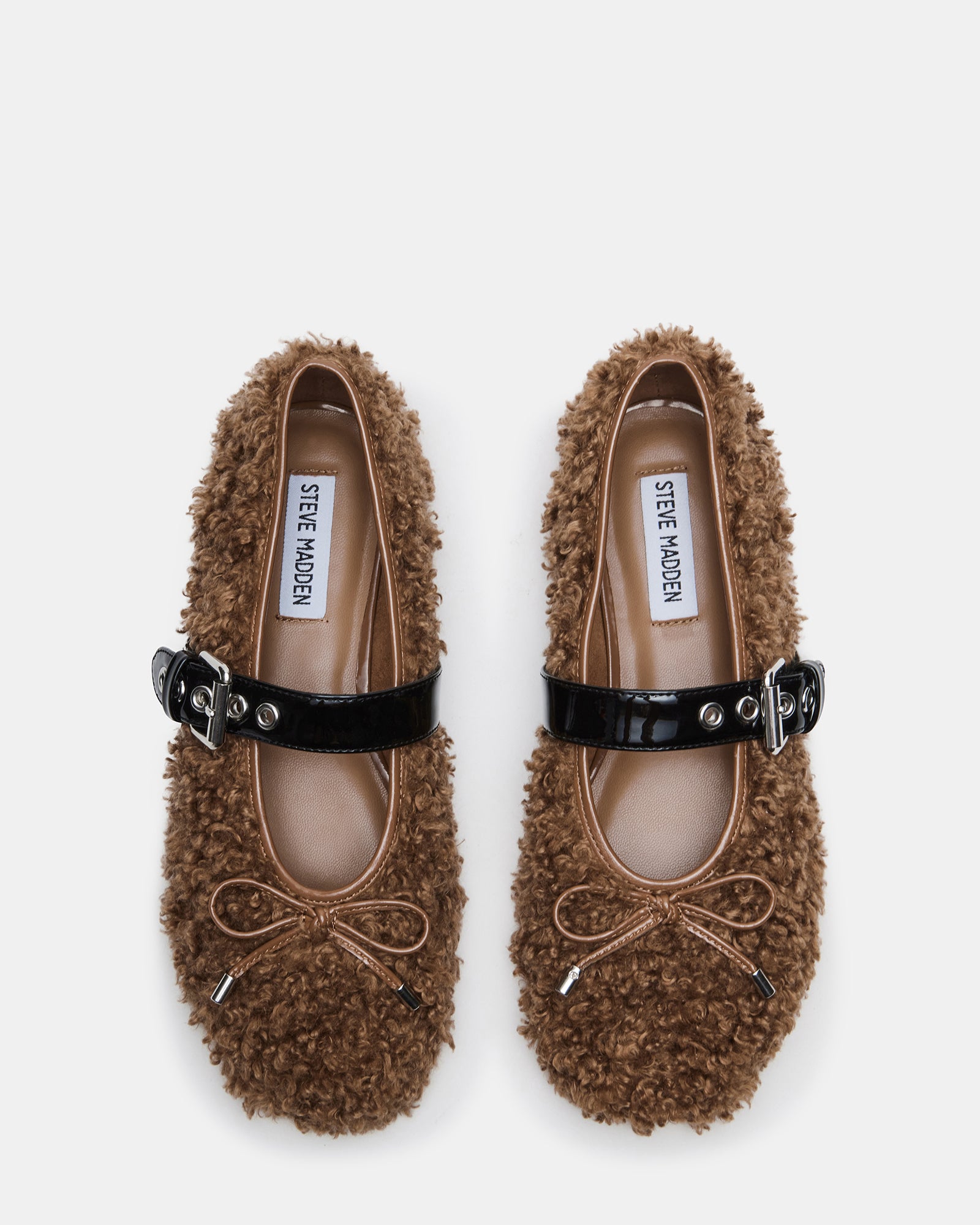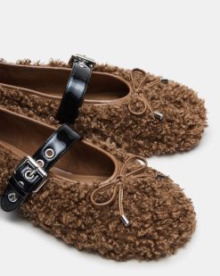 Crafted with faux shearling and featuring a delicate bow cord. the MELVIN ballet combines both style and comfort. The buckle strap adds a touch of elegance to this versatile shoe. Perfect for all-day wear. this flat is a must-have for any fashion-forward individual.