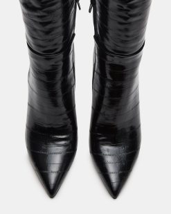 The NITRO BLACK EEL is a sophisticated and versatile addition to any wardrobe. This pointed-toe heeled stiletto is designed for both style and comfort. ensuring a confident stride. With a knee-high height. it adds a touch of elegance to any outfit.