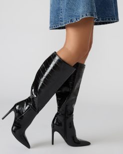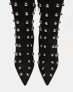 The NITRO BLACK STUDS is a sophisticated and versatile addition to any wardrobe. This pointed-toe heeled stiletto is designed for both style and comfort. ensuring a confident stride. With a knee-high height. it adds a touch of elegance to any outfit.