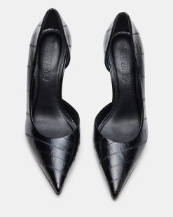 The NULA BLACK EEL features a sleek pointed-toe design paired with a slender stiletto . offering an elegant silhouette that enhances posture and elongates the leg line. Crafted for both style and sophistication. this pump combines bold zebra patterning with refined construction. making it an ideal choice for elevated. confident looks in professional or evening settings.