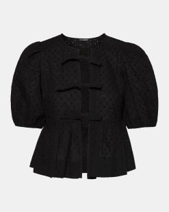 The PAULA features stylish short-sleeved puff sleeves and a tie-front detail. accented by delicate eyelet detailing. This top offers a chic. modern look perfect for any occasion.
