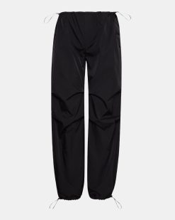 A wide leg casual is essential for an updated silhouette and the adjustable PIA parachute pants use stretch cord drawstrings and clever tailoring to maximize the voluminous silhouette.