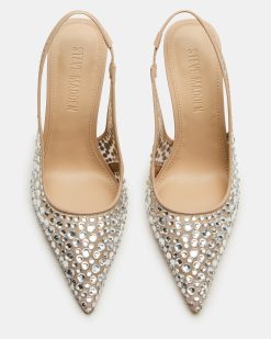 - Textile and synthetic upper material with rhinestones