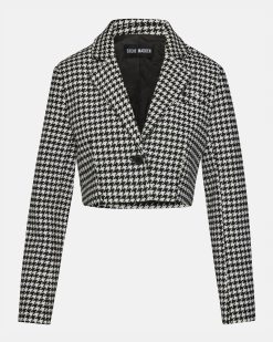 The RUPI is expertly designed with a cropped single-breasted style. complete with a faux chest welt pocket. Fully lined with shoulder pads. this blazer creates a polished and structured silhouette. Perfect for any occasion. this blazer is a versatile addition to any wardrobe.