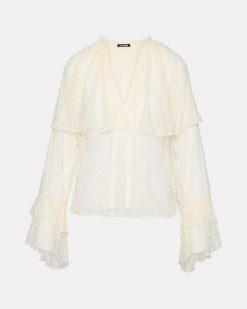 The SAYLOR features a refined lace design with long sleeves. offering a blend of elegance and sophistication. Crafted to provide a delicate texture and subtle transparency. this top is ideal for layering or wearing on its own for a polished. expert look. Its timeless style and detailed construction make it a versatile addition to any wardrobe. perfect for both professional settings and stylish evening occasions.