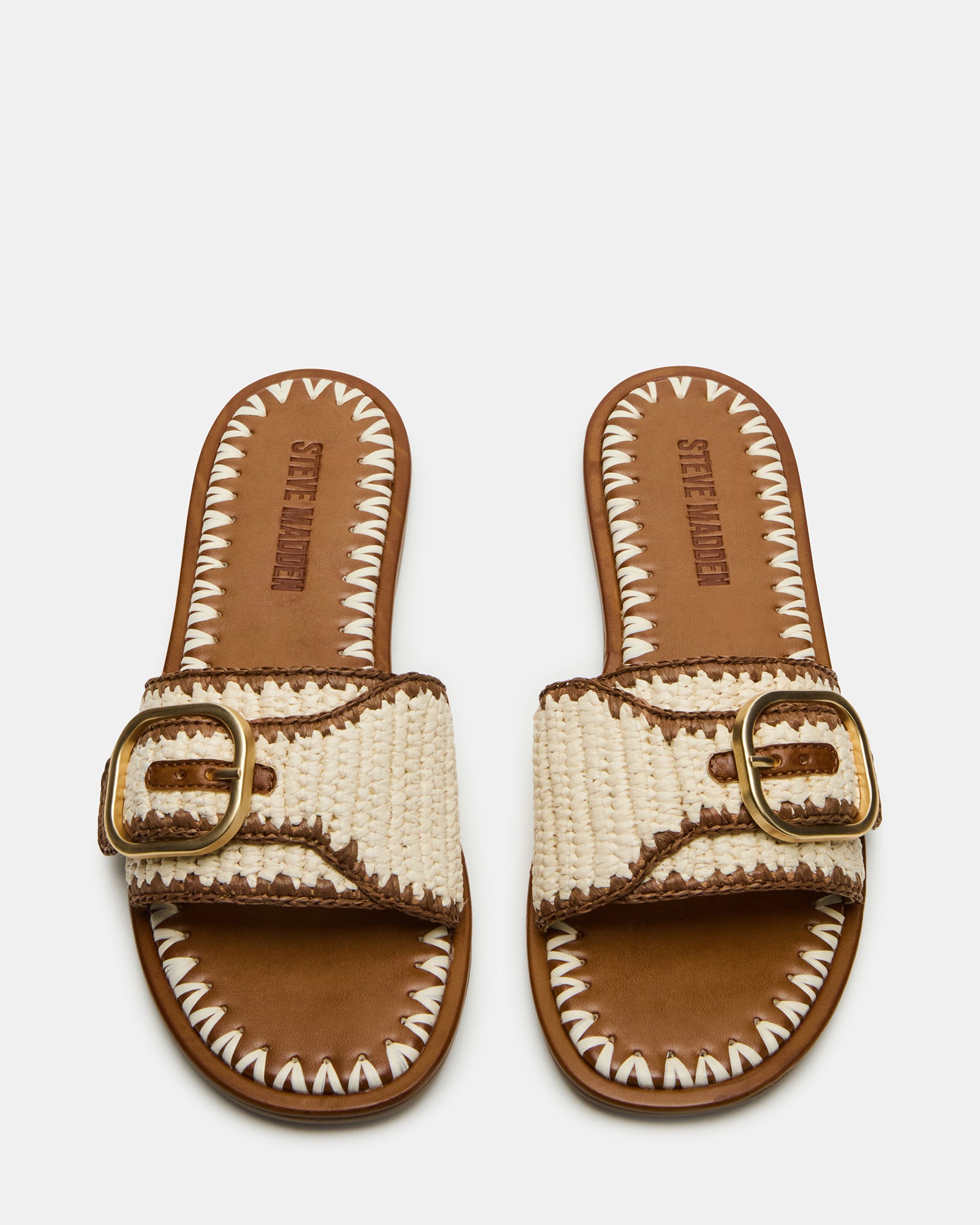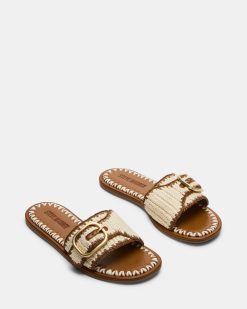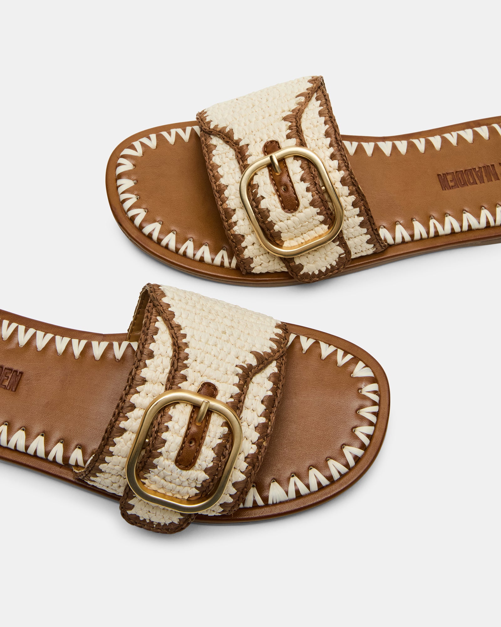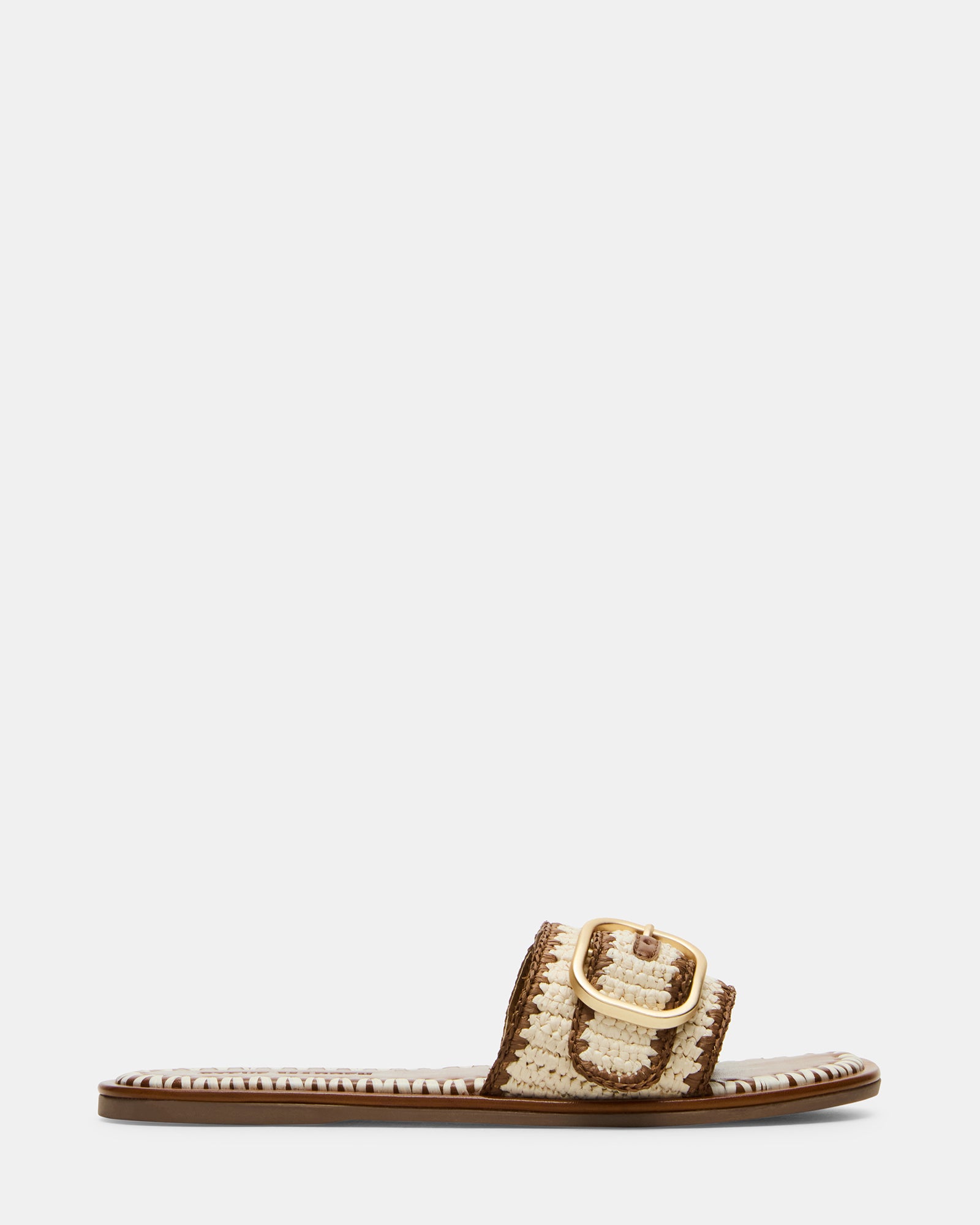 Expertly crafted with a flat sole and buckle decal. the SEABREEZE raffia offers both style and functionality. Slip into comfort with the convenient design. perfect for all-day wear. Elevate any outfit with this versatile sandal. which is ideal for any occasion.