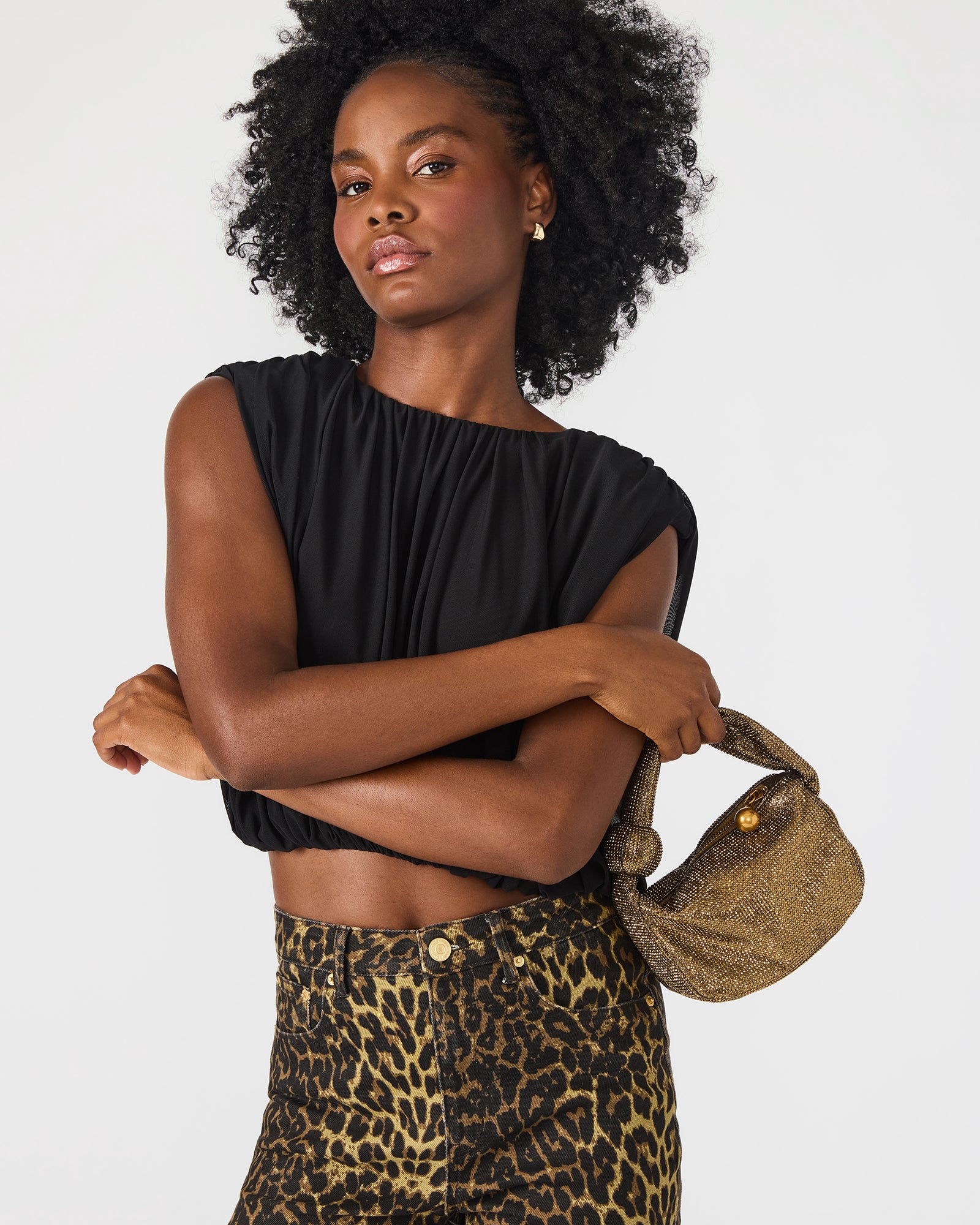 Introducing the SPARKLY bag. This evening top-handle bag boasts a soft design and decorative puller. perfect for dressing up or down. The crystal-encrusted detail adds a touch of glamour while fitting a phone for convenience.