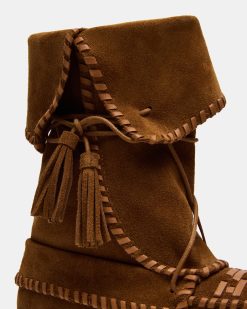 The TIPPETT is a stylish and versatile fold-over . With its lace-up closure. braided edges. woven pattern. and rounded toe. it provides a secure and comfortable fit. The added touch of tassels adds a fashionable element to this must-have shoe. Perfect for any occasion. this boot is the perfect combination of fashion and function.
