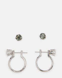 CRYSTAL EARRINGS SET BLACK/SILVER