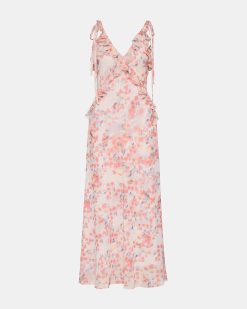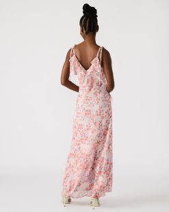 Be the center of attention in the stunning ADALINA . This dress features a v-neckline and ruffle detail that will make you stand out on any occasion. With its sleeveless design. this maxi dress is the perfect addition to your wardrobe.