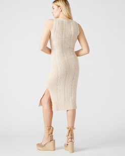 Introduce some effortless style to your spring wardrobe with the AMIRAH . This dropped stitch tank dress features open side slits for a breezy feel while still maintaining a bodycon fit. Perfect for any occasion. this midi sweater dress is a must-have.