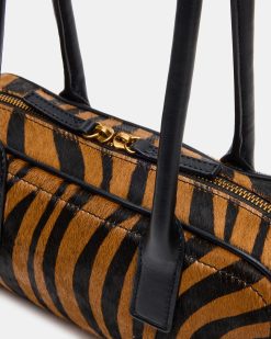 The ANISE BAG TIGER is a sleek and structured elongated shoulder bag that captures the minimalist trend. It features an interior pouch on the front wall for added organization and exaggerated tubular shoulder straps for a chic touch. Elevate your accessory game with this versatile and stylish bag.