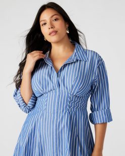 The ARIA is a must-have for your wardrobe. The menswear-inspired design features a corset waist and back waist smocking for a flattering fit-and-flare silhouette. Made from soft cotton poplin. this mini dress will be your go-to for any occasion.