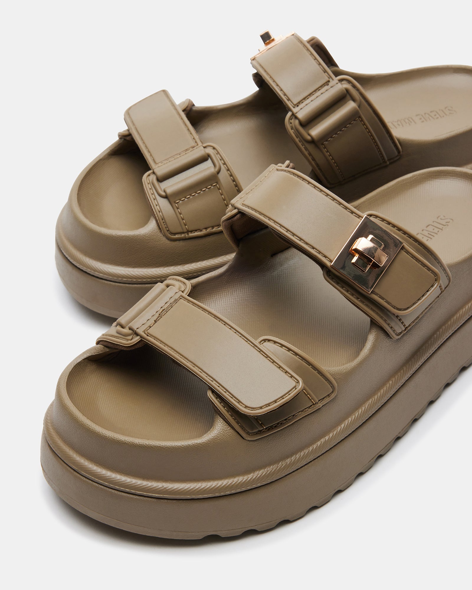 Elevate your style with the BIGSCHMONA JELLY slide . The flatform design provides a modern twist while the turn-lock hardware accent adds a touch of sophistication. Step up your fashion game while enjoying the comfort and stability of this versatile shoe.