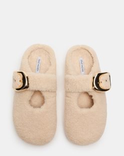 The CLOUDY NATURAL flat combines classic design with modern comfort. Featuring a rounded toe and a chic gold buckle detail. this style is crafted with soft faux fur for a plush. comfy feel. Ideal for those seeking effortless elegance. it offers both style and ease for everyday wear.