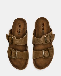 Crafted from high-quality suede. the CORBAN slide offer both comfort and style. The slip-on construction and double buckle closure ensure a secure fit. making them perfect for everyday wear. Elevate your shoe game with these versatile and stylish sandals.