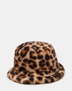 FAUX FUR BUCKET HAT LEOPARD RHINESTONES