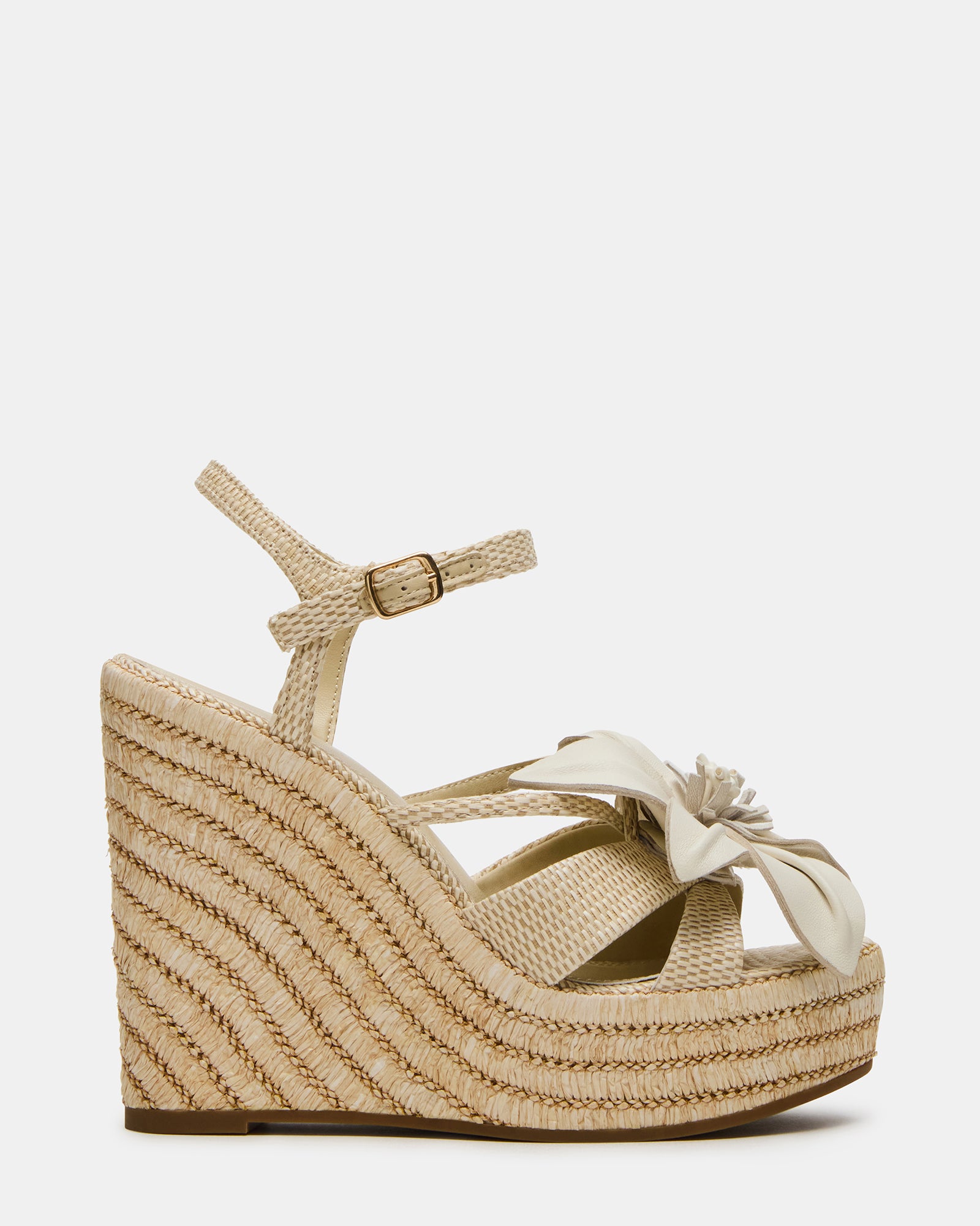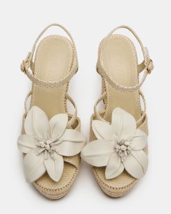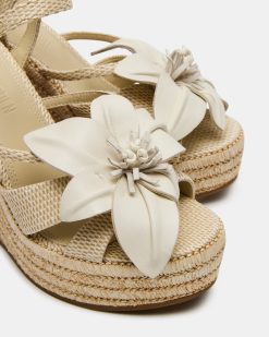 Introducing the FLORENTINA platform wedge . featuring a stunning 3D flower design and secure ankle strap. Elevate your style while staying comfortable all day with the extra height and support of a platform and wedge. Step into fashion and functionality with this unique and timeless espadrille sandal.