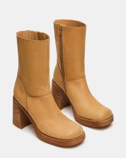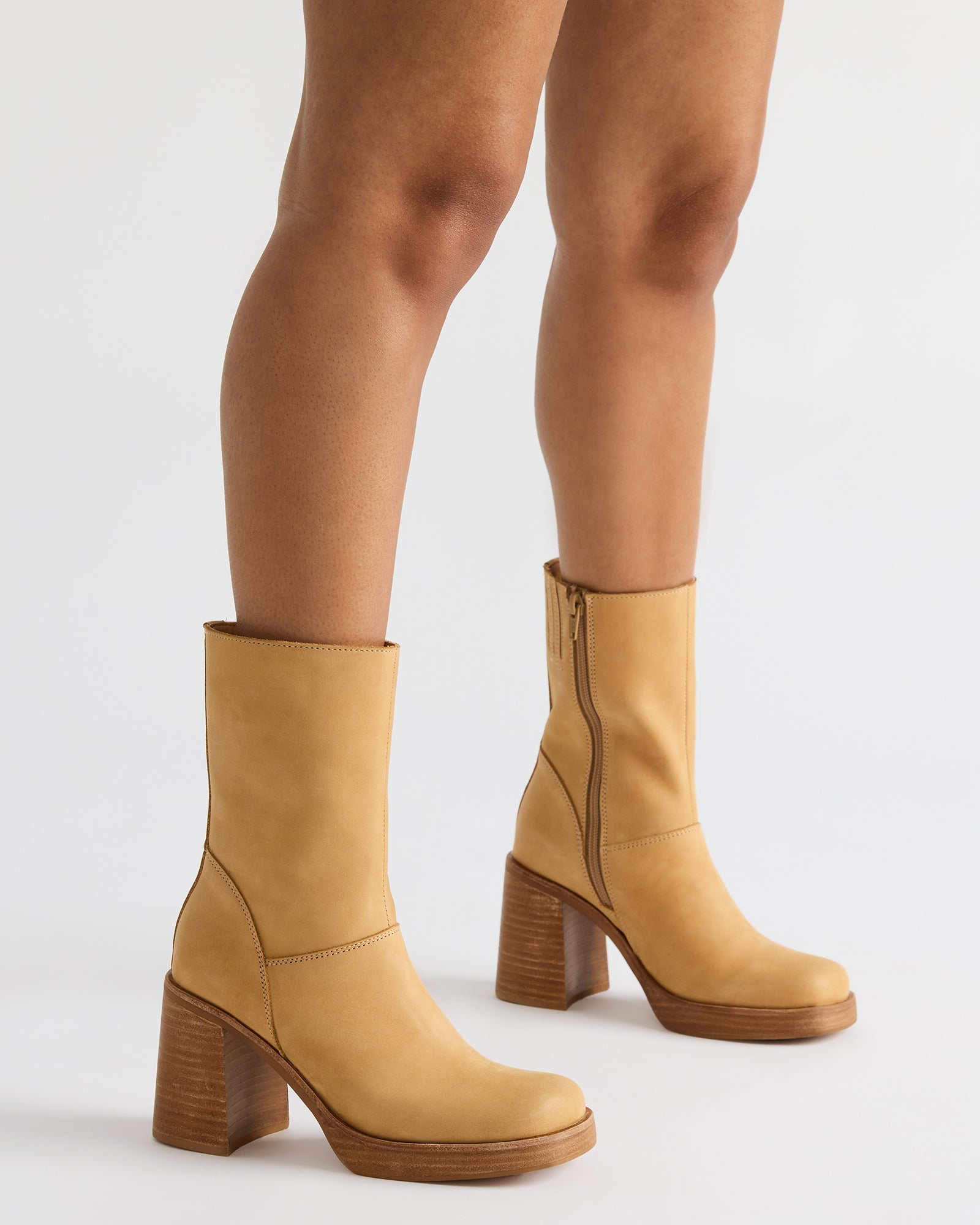 The FUSION BANANA LEATHER features a modern square-toe silhouette paired with a sturdy block heel. delivering both contemporary style and reliable support. This ankle boot design offers versatile everyday wear with a polished aesthetic. Perfect for transitioning seamlessly from office to evening occasions.