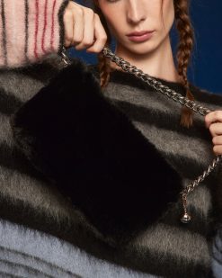 Introducing the FUZZ bag – the ultimate combination of fashion and functionality. Featuring a cozy fuzzy exterior. a chain shoulder strap. and a secure magnetic snap closure. this bag is both stylish and practical. Elevate your look with this must-have accessory.