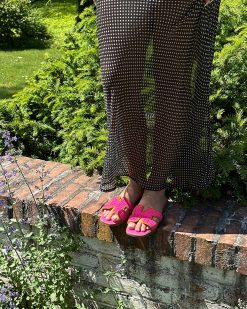 Geometric cutouts on the wide single strap of the HADYN slide give this flat design a fresh feel.