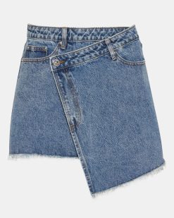 - Asymmetrical denim wrap skirt