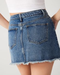Elevate your fashion game with the KYLA denim . This mini wrap skirt features an asymmetrical silhouette and raw edge hem for a modern and edgy look. Made with washed denim. it’s perfect for any occasion.