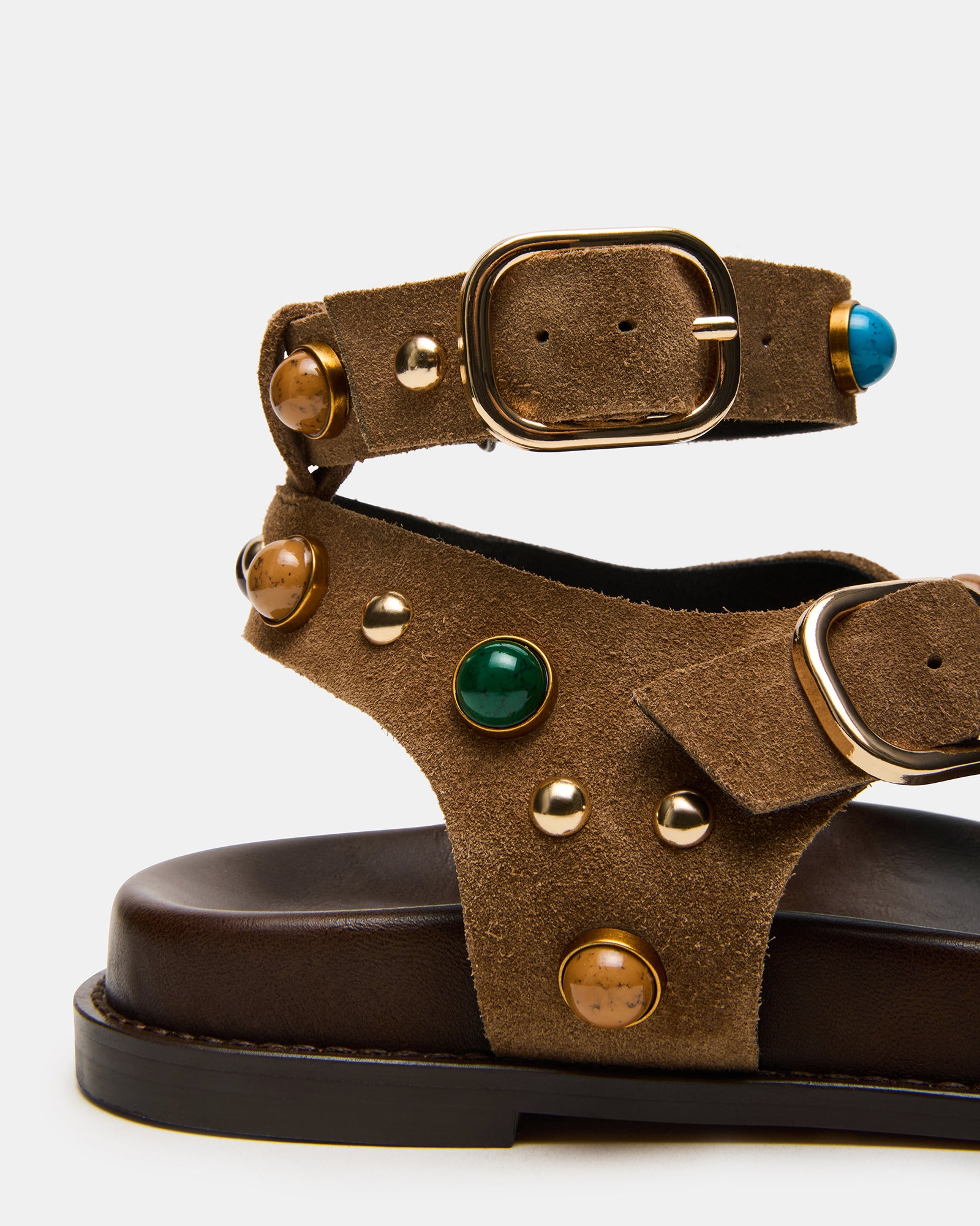 Expertly crafted for comfort and style. the LINEAR features a secure ankle strap. supportive footbed. and rounded toe. With stud hardware embellishments. these strappy sandals are the perfect combination of functionality and fashion.