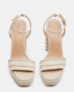 Elevate your beach style with LUMARA . The block heel and provide comfort. while the ankle strap ensures a secure fit. The pearl and raffia detail add an elegant touch. Perfect for any bride seeking both fashion and function.