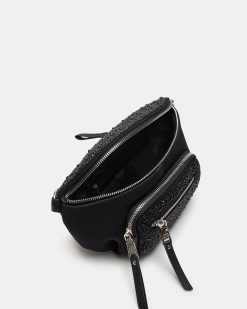 Enhance any outfit instantly with the MAXIMA BAG BLACK. a rhinestone belt bag designed for stylish functionality on the go.