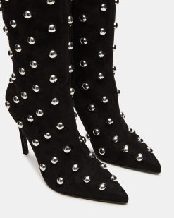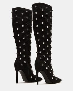 The NITRO BLACK STUDS is a sophisticated and versatile addition to any wardrobe. This pointed-toe heeled stiletto is designed for both style and comfort. ensuring a confident stride. With a knee-high height. it adds a touch of elegance to any outfit.