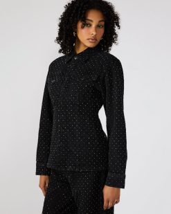 - Rhinestone stud embellishments