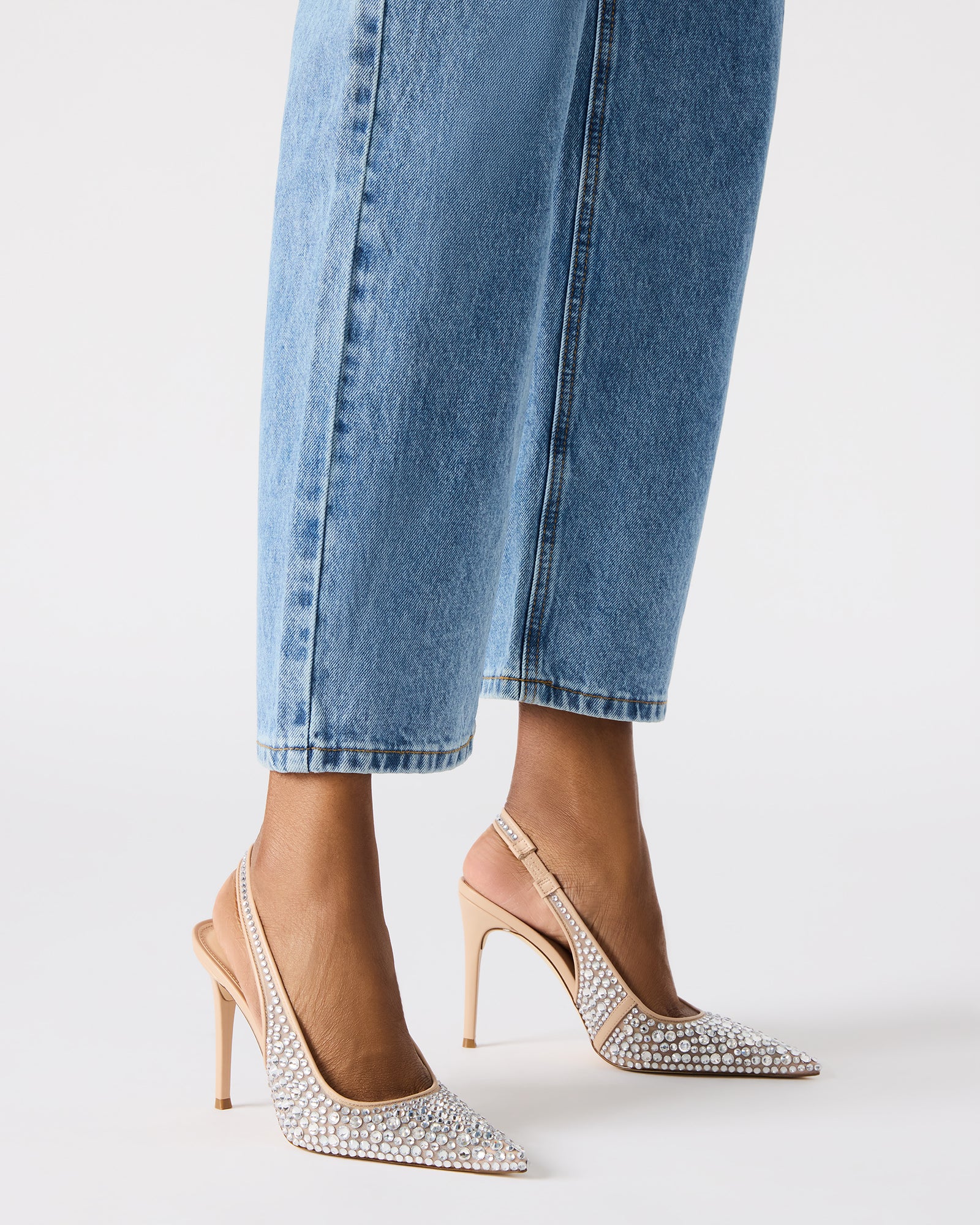 - Textile and synthetic upper material with rhinestones