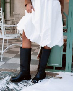 Effortlessly elevate your style with the RIGGS . With its square-toe and sleek design. this just-under-the-knee boot is a must-have for any fashion-conscious individual. This timeless boot provides both comfort and sophistication. making it the perfect addition to any outfit.