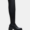 The ROCKY knee features the wide profile of an engineer boot with harness and buckle hardware adding an industrial edge and giving the design an adjustable fit.